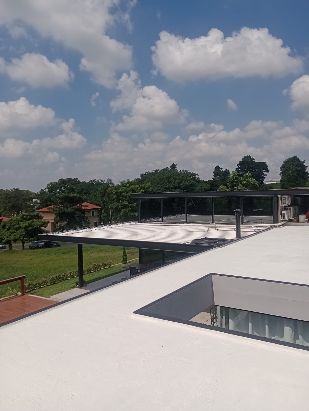 Realizamos desde a limpeza e lavagem de telhados para remoção de fungos e sujeira, até a substituição de telhas danificadas (cerâmicas, de concreto, fibrocimento ou metálicas). Executamos impermeabilização de calhas, rufos e lajes, além de reparos e reforços na estrutura de madeira ou metal.