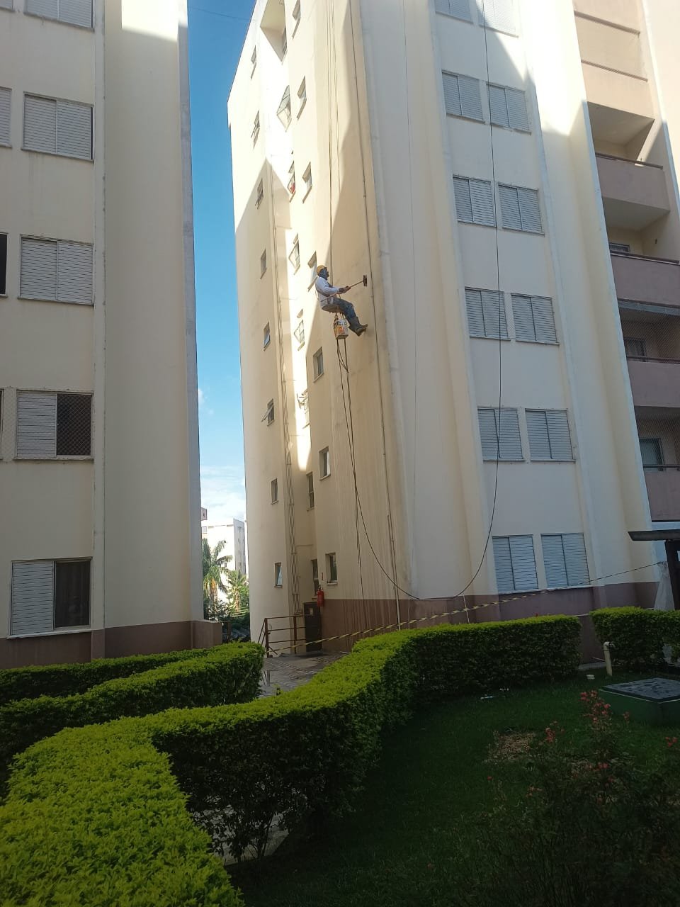 Nosso Diferencial Técnica e Segurança: Este é o nosso maior forte. Para trabalhos em grandes alturas, possuímos equipe própria com certificação NR 35 atualizada e utilizamos equipamentos de proteção individual (EPIs) e coletiva (EPCs) de ponta, conforme exigido pela NR 18. Apresentamos toda a documentação legal (Laudos Médicos, Certificados de Treinamento, Ordem de Serviço detalhada e PCMSO) antes do início da obra, garantindo que o condomínio esteja totalmente resguardado juridicamente.