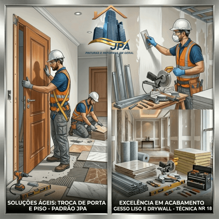 Na JPA Pinturas e Reformas em Geral, acreditamos que nenhuma intervenção é pequena demais para não merecer nossa atenção técnica. Oferecemos soluções completas para aquelas atualizações e reparos essenciais que transformam o ambiente e resolvem problemas funcionais com rapidez e excelência.